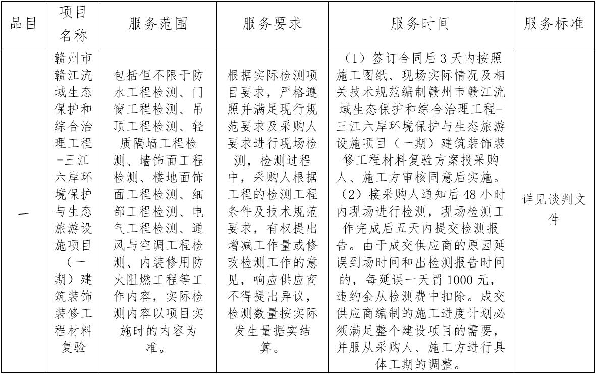 赣州市赣江流域生态保护和综合治理工程-三江六岸环境保护与生态旅游设施项目(一期)建筑装饰装修工程材料复验竞争性谈判成交结果公告