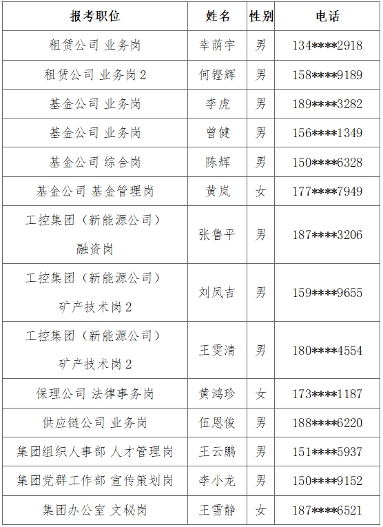 根据《赣州发展投资控股集团2024年公开招聘公告》有关规定,通过公开报名、简历初审、资格审查、笔试、面试、体检与背调等程序,经研究,确定以下14名同志为拟录用人员,现予以公示: