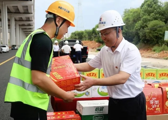 8月14日,赣州发展城镇公司党支部联合“虔心建”结对共建党组织——市住建局机关三支部,组织党员前往东江源大道快速化改造工程、赣南大道四标南康段等项目现场开展“情系一线送清凉 戮力攻坚保通车”主题党日活动,为坚守在施工一线的建设人员送上面包、王老吉、纯牛奶、矿泉水等慰问品,将党组织的温暖传递到每一位建设人员手中。