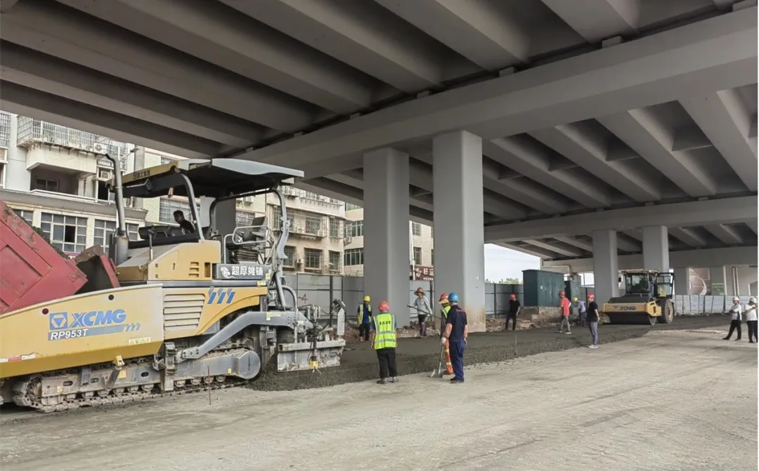 沙河大道快速路地面段主体进入水稳层摊铺阶段