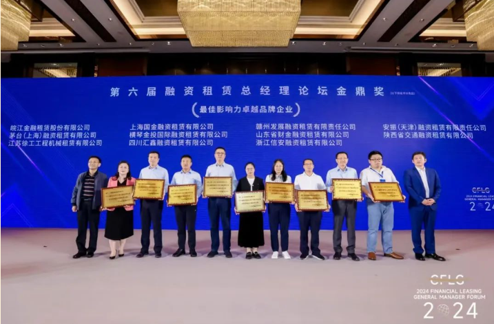 近日,第六届中国融资租赁总经理论坛暨“金鼎奖”年度颁奖盛典在珠海举行。集团旗下租赁公司荣获“2024融资租赁行业卓越品牌企业最佳影响力卓越品牌企业”奖,该奖是行业内对租赁公司行业地位、服务质量的极大肯定,也是对公司长期以来服务地方经济高质量发展的认可。