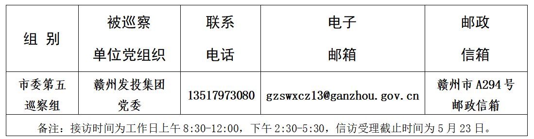 市委第五巡察组对赣州发投集团党委 巡察“回头看”的公告