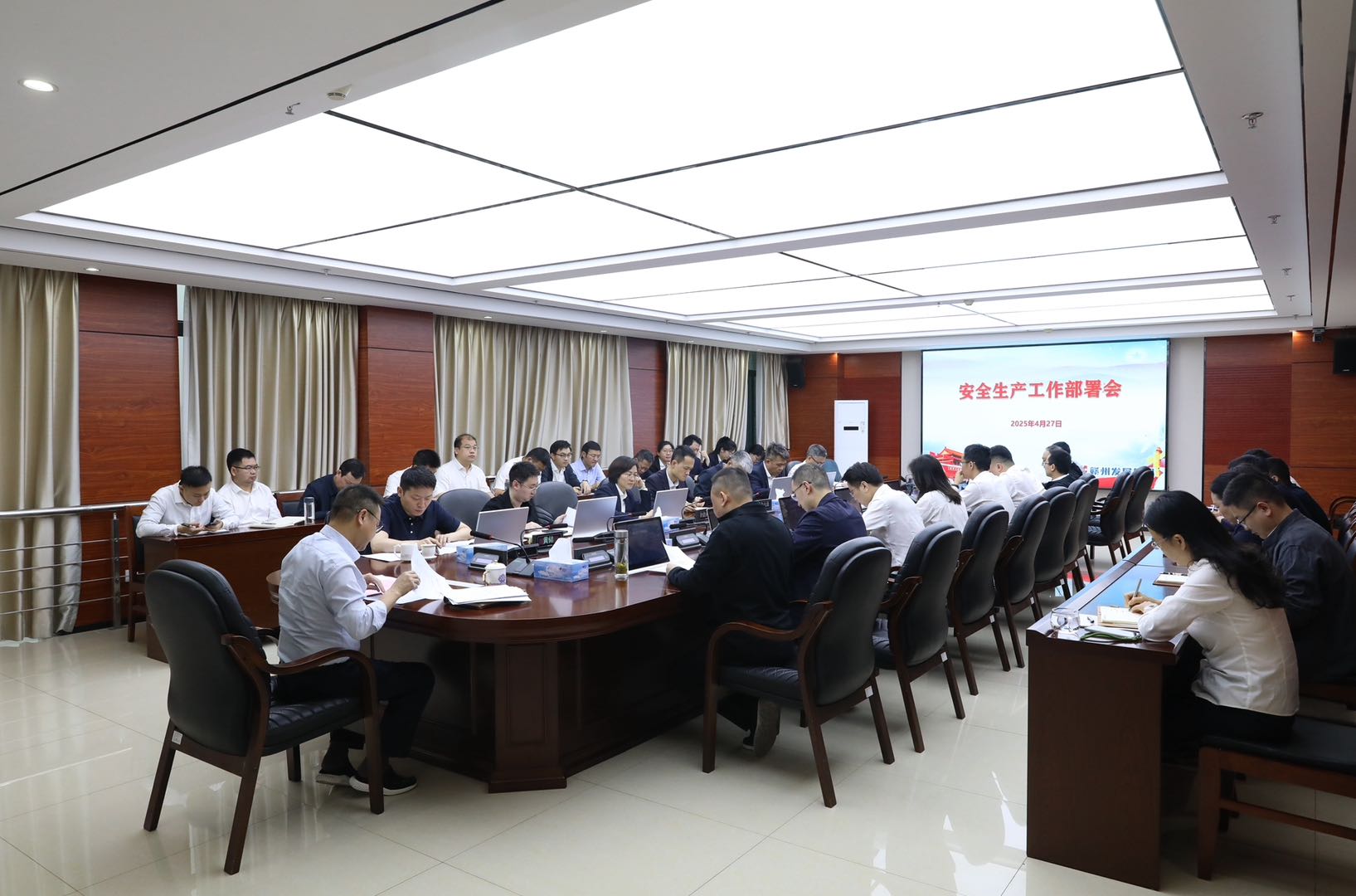 4月27日,集团召开安全生产工作部署会,深入分析当前安全生产形势,并对近期安全生产工作进行全面部署。集团党委副书记、总经理梁敏辉主持会议并讲话,集团党委副书记黄储,集团高管彭慧斌、刘昭祥、孟佳聪参加会议。