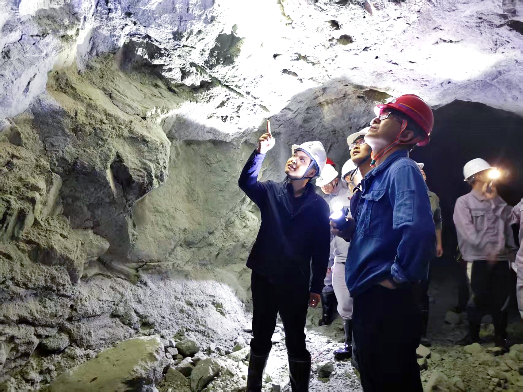 在矿山现场,廖生兴一行深入提升竖井、工业场地、+298、+260中段掘进面等重点区域,实地查看安全生产措施落实情况,详细了解矿山安全管理制度执行、风险防控及人员配备情况,并就现场安全管理、安全投入保障等方面提出了具体要求。