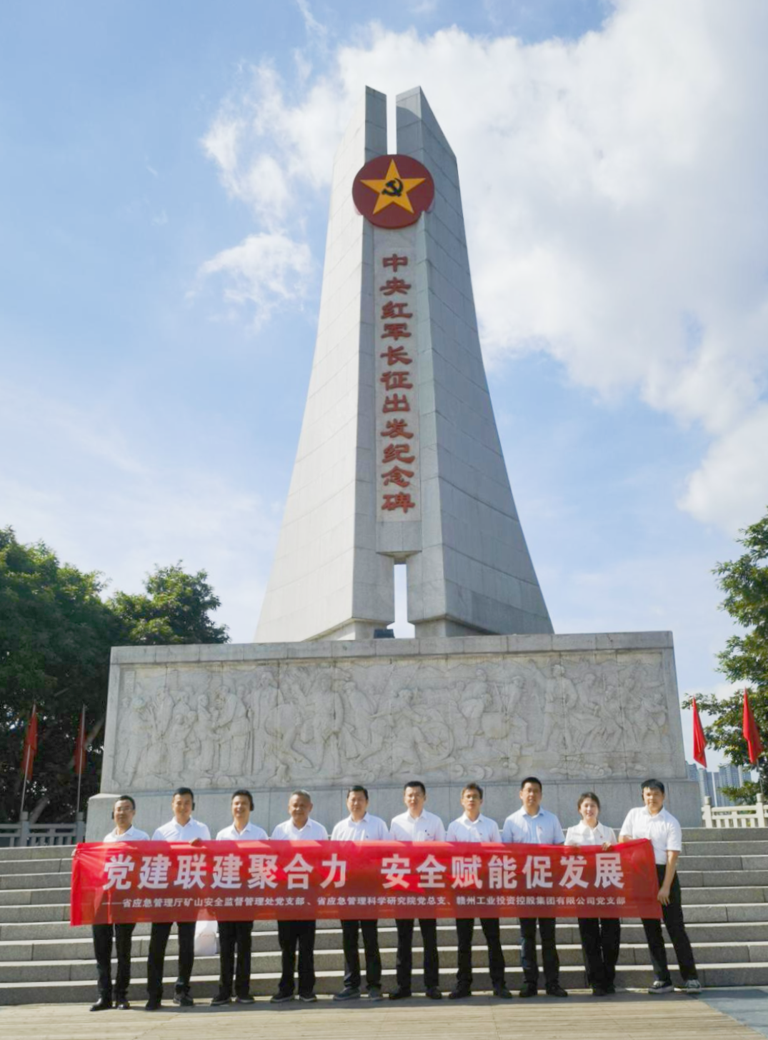 省应急管理厅矿山处党支部、江西省应急管理科学研究院党总支、赣州工业投资控股集团党支部还前往于都中央红军长征出发纪念碑、中央红军长征第一渡口、中央红军长征集结出发出发点纪念园等参观学习。