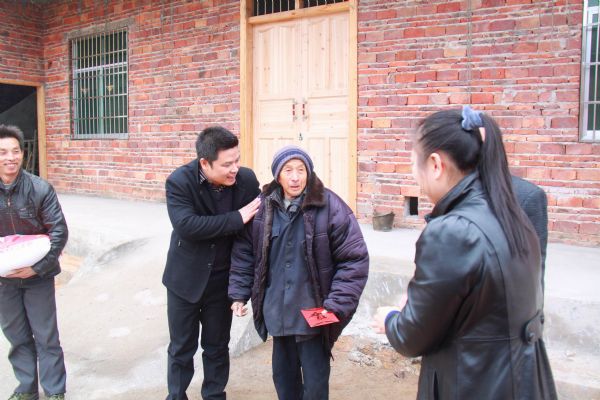 “三送”春风暖民心,一枝一叶总关情。2015年1月28日,集团公司纪委书记、副总经理肖春雷,党委委员、董事会秘书廖生兴代表集团公司来到 “三送”挂点村——南康区大坪乡大坪村走访慰问15户老党员及困难户,送去党组织的关怀与温暖。他们每到一户,都和慰问对象嘘寒问暖、倾心交谈,宣传党的政策,传递正能量,同时给每户慰问对象送上600元现金和100元的物资,帮助老党员、困难户度过一个欢乐祥和的春节。