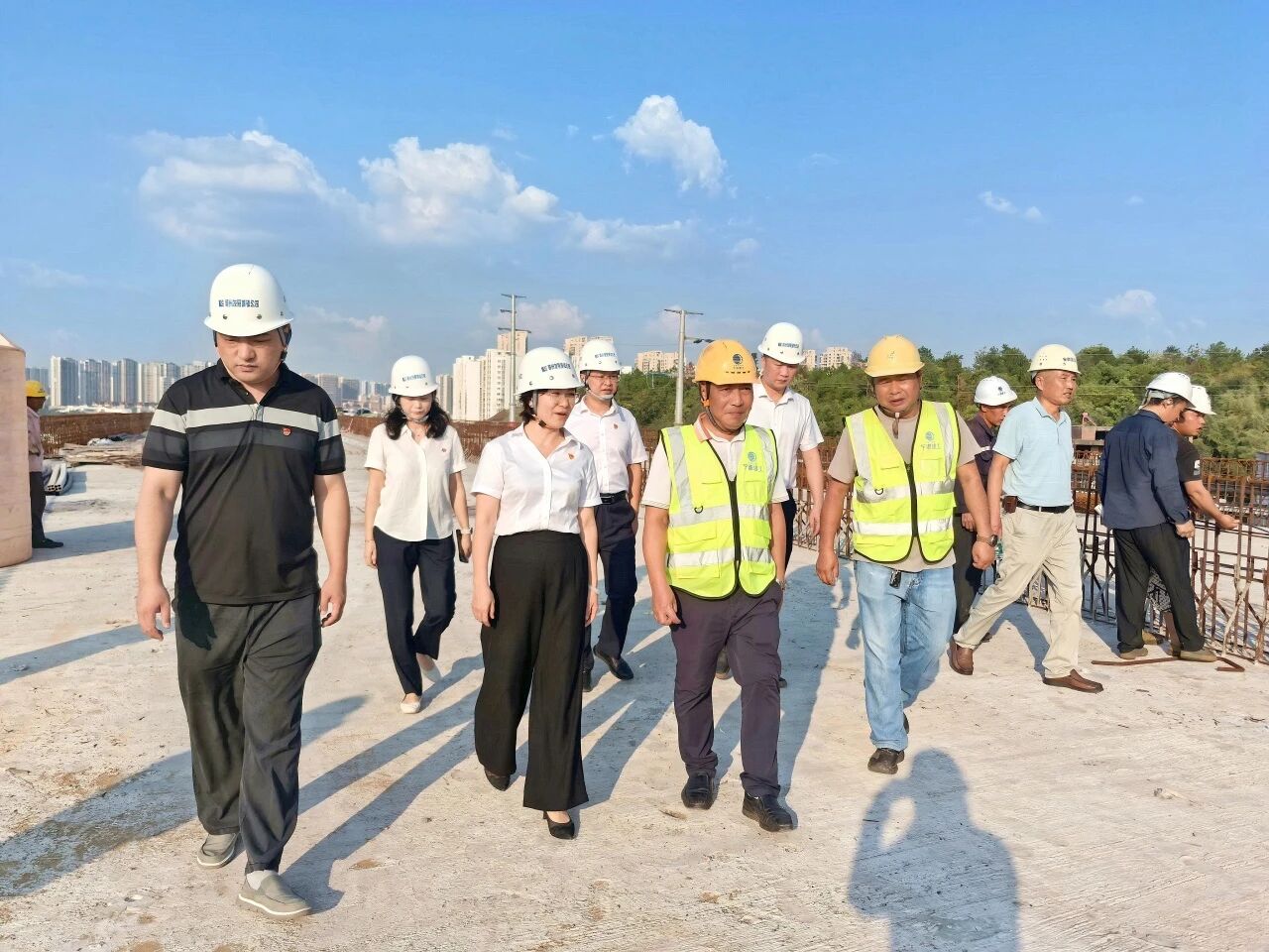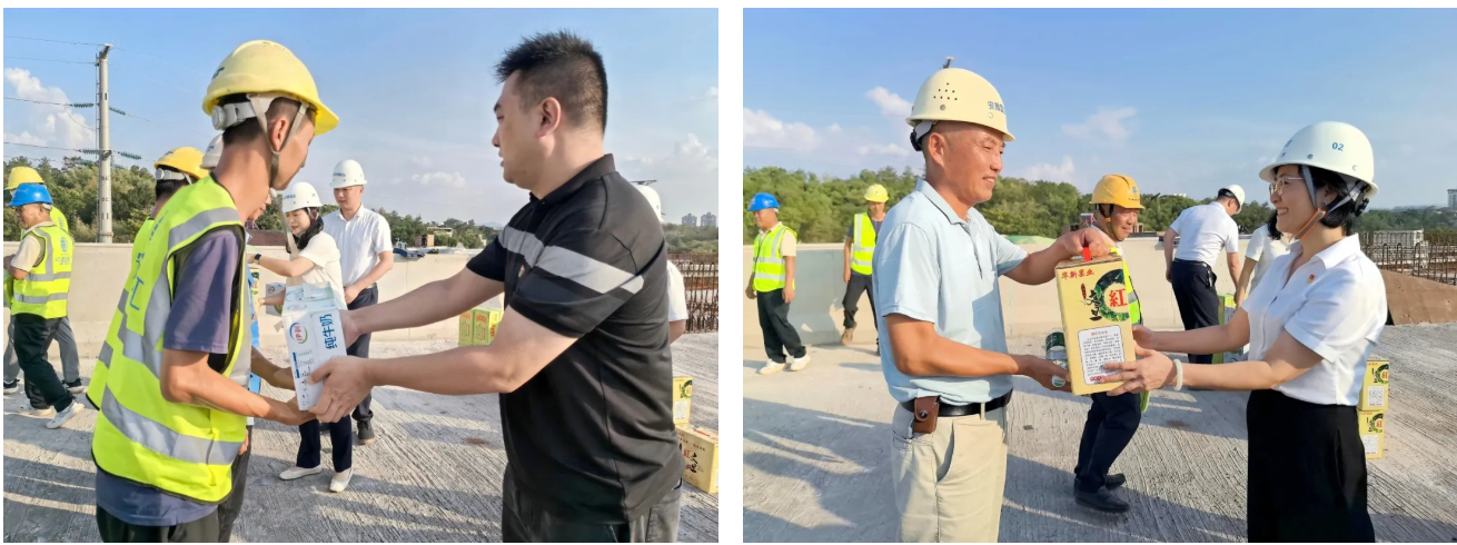 “国庆”“中秋”双节将至,赣州中心城区二期快速路各项目施工现场一片繁忙,建设者们坚守岗位,全力攻坚工程建设。9月28日,赣州发展城镇公司党支部联合“虔心建”结对共建党组织——市住建局机关三支部,组织党员前往武陵大道快速路二标段项目现场,开展“月满中秋 情暖一线”慰问活动,为一线建设者送上节日问候与暖心关怀。