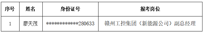 根据《赣州发展投资控股集团有限责任公司2025年公开招聘公告》,经报名、资格审查、第一轮面试、第二轮面试、体检、考察等程序,现将赣州工控集团(新能源公司)副总经理拟录用人员名单及有关事项公告如下: