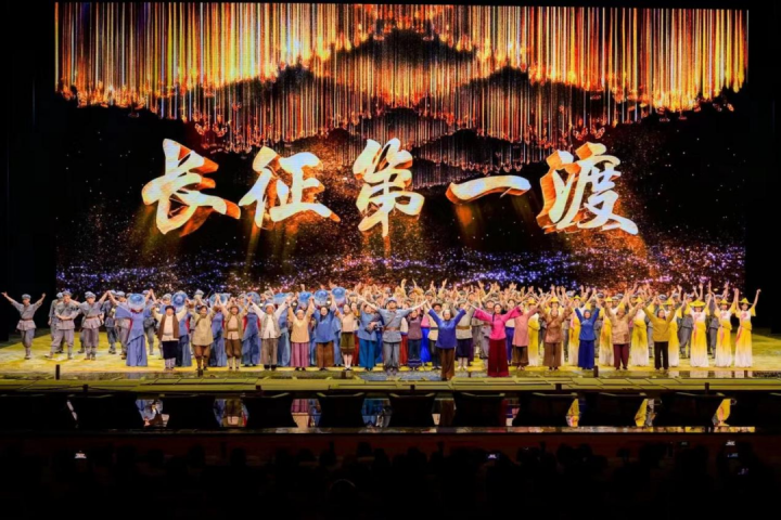 晚上,集体观看了大型文旅演艺项目《长征第一渡》,演出以艺术形式讲述了红军战士从于都集结出发开始长征,在艰苦卓绝的斗争中淬炼成长,以血肉之躯铸就精神丰碑,最终迎来胜利曙光的动人故事。