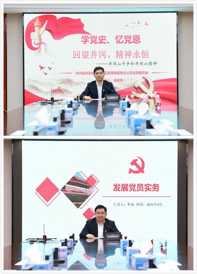 资产公司党支部书记朱庆华、融资租赁公司副总经理李斌分别以“学党史、忆党恩,回望井冈、精神永恒”和“发展党员实务”为题为大家作专题讲课。