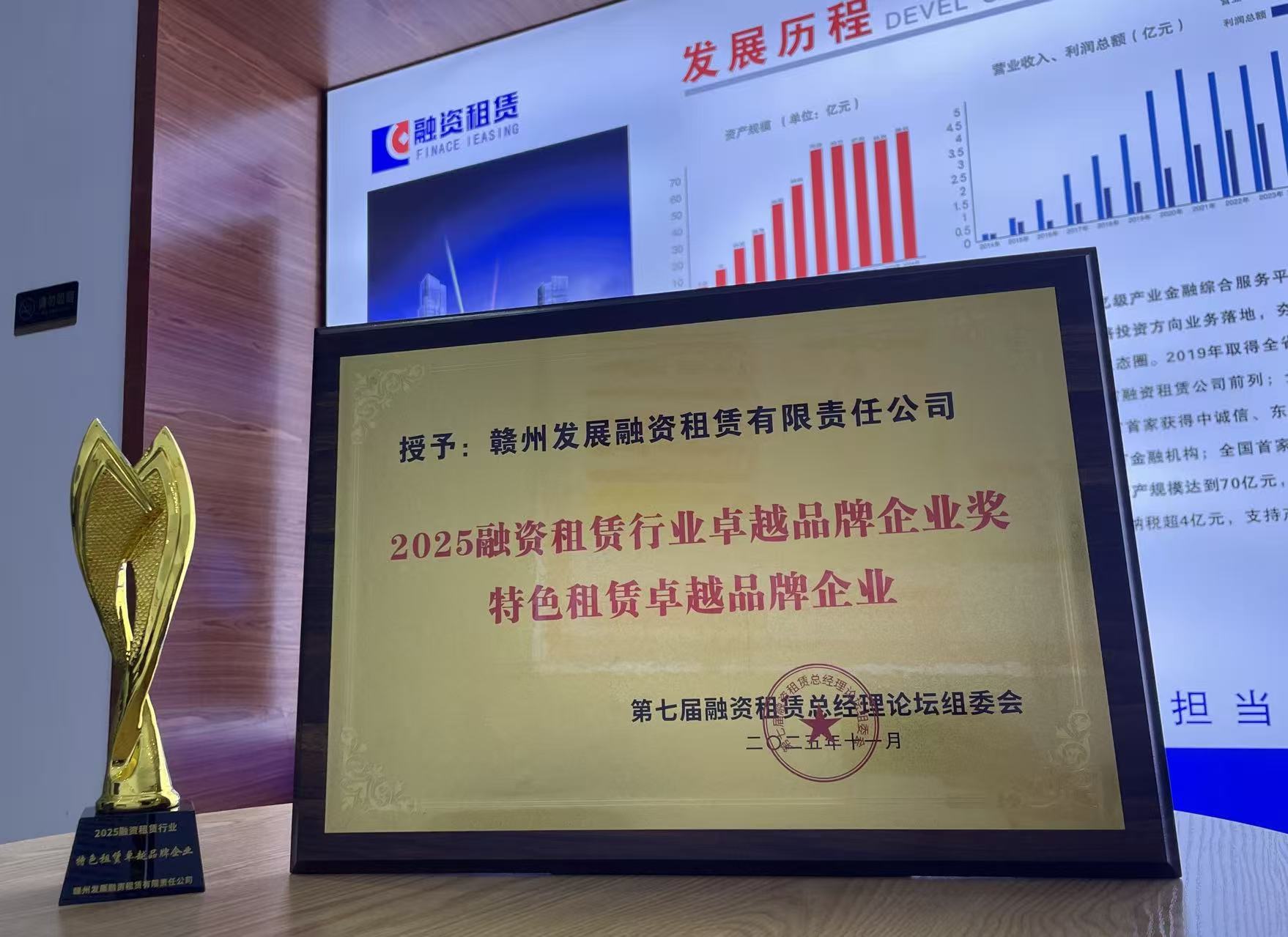 赣州发展融资租赁公司荣获“2025融资租赁行业卓越品牌企业奖——特色租赁卓越品牌企业”
