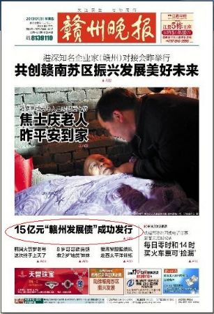 1月31日,《赣州晚报》以《15亿元“赣州发展债”成功发行》为题报道了我公司最新融资成果,详细介绍了“13赣州发展债”的发行情况、发行规模、资金用途、发行意义等,在社会引起了广泛关注。