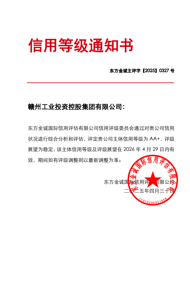 全省首家!赣州产投集团获评中诚信AAA 实现主体信用...