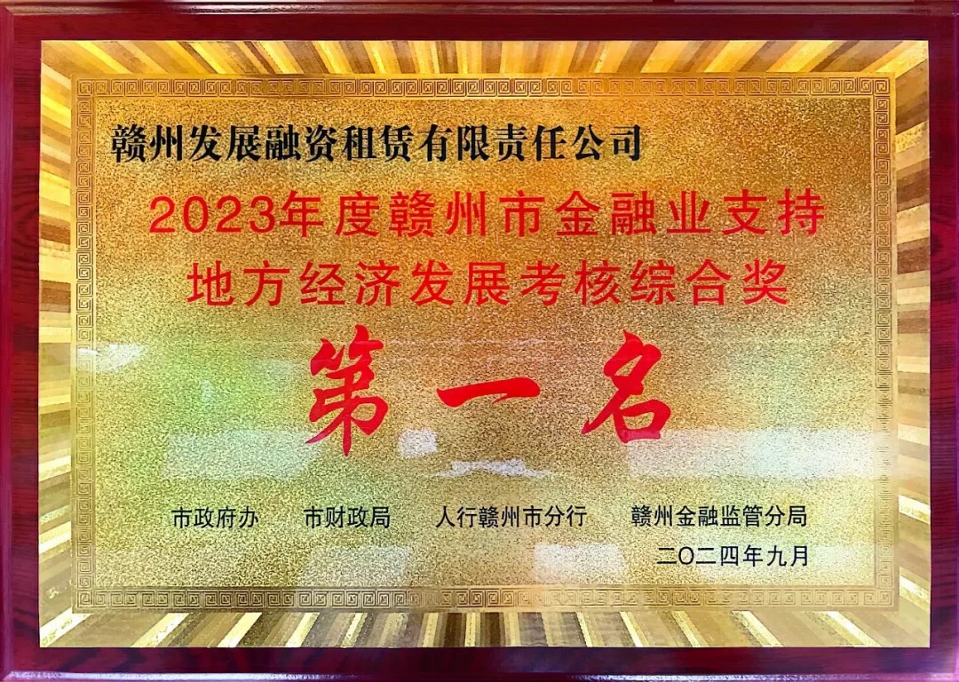赣州发展租赁公司获评2023年度赣州市金融业支持地方...