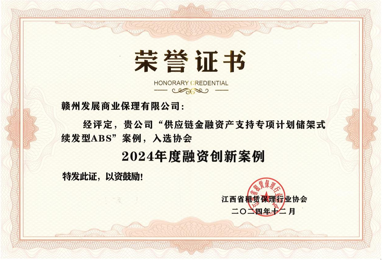 赣州发展保理公司产品案例入选江西省租赁保理行业协会2...