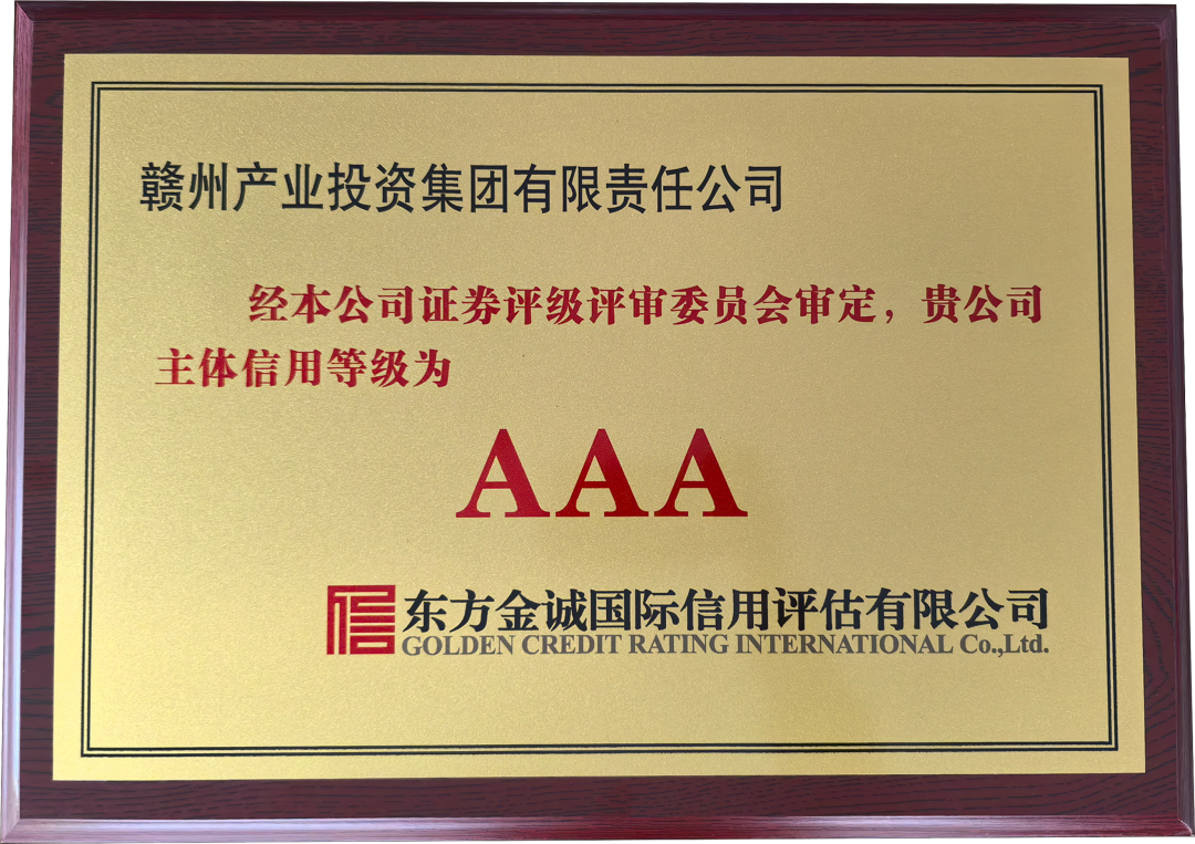 必赢3003no1线路检测中心改组分设的赣州产投集团荣获“AAA”主体...